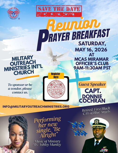 Get ready to soar to new heights at our highly anticipated Reunion Prayer Breakfast, where reconnecting with old friends and fostering fellowship takes center stage! We’re thrilled to announce that our keynote speaker, the remarkable Capt. Donnie Cochran, will grace us with his inspiring tales from the skies as a fighter pilot and the first black commanding officer of the famed Blue Angels demonstration squadron. His legacy is sure to uplift and resonate through generations, igniting a spark of motivation in all of us! Adding to the joy of this occasion, the incredible Ms. Manley, our Minister of Music and a talented 5th-grade teacher, will elevate our worship with her divine gift of music. This is not just another breakfast; it's a chance to reconnect, rejoice, and rejuvenate our spirits together! So, don't wing it—register now and be part of this unforgettable gathering that promises to strengthen the bonds of our faith community! Let’s make this event a heavenly reunion where we can all take flight together! 🎉✈️