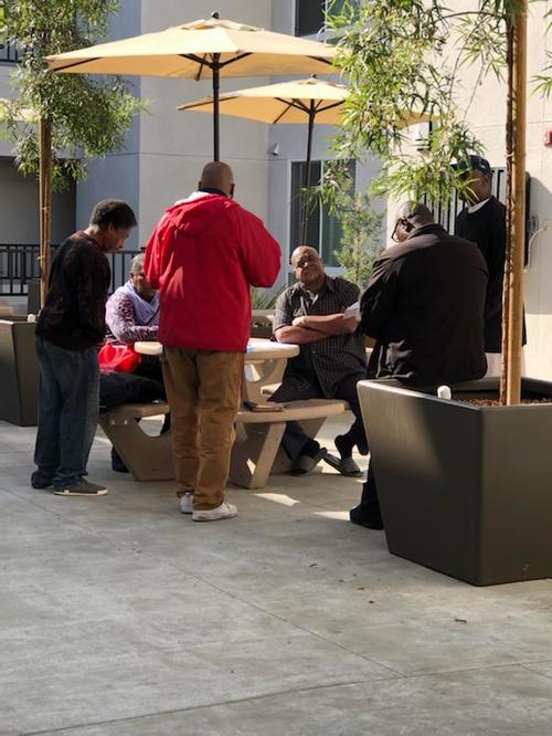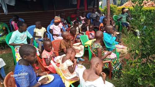 The picture depicts youth eating after a wonderful church service. Our church has partnered with Pastor Daivon to provide bibles and whatever else we can do for them.